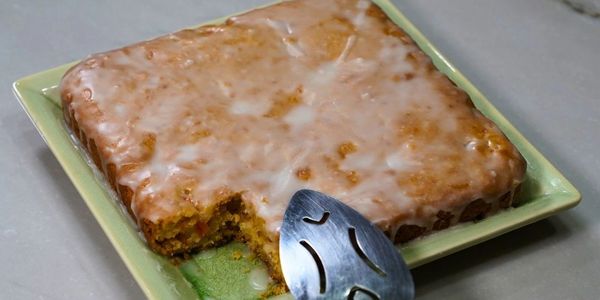 Bits of papaya give an unusual texture and the lemon glaze gives a tart sweet topping. I've not seen this cake sold in any bakery or store but surely this will be a favorite dessert among all ages.