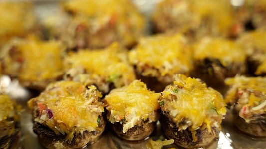 This is an easy dish using various types of mushrooms with caps and stems. You can use regular white mushrooms, shiitake, baby bella or portabella. Various ingredients are used for the filling including the stems. These are one bite appetizers for the smaller mushrooms.